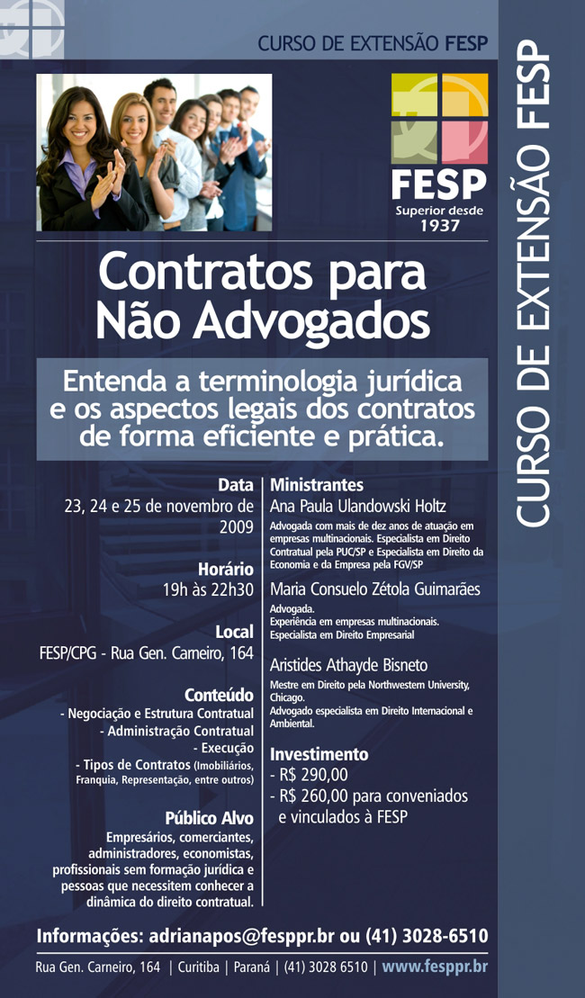 O curso é dirigido a profissionais sem formação jurídica que tenham necessidade de conhecer a matéria, de forma leve e objetiva.