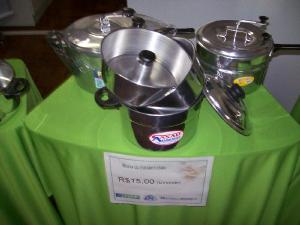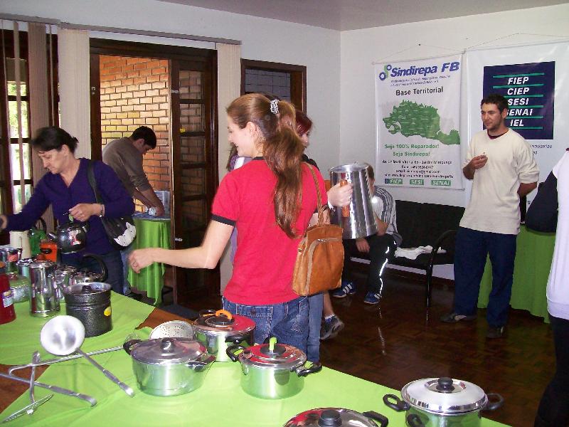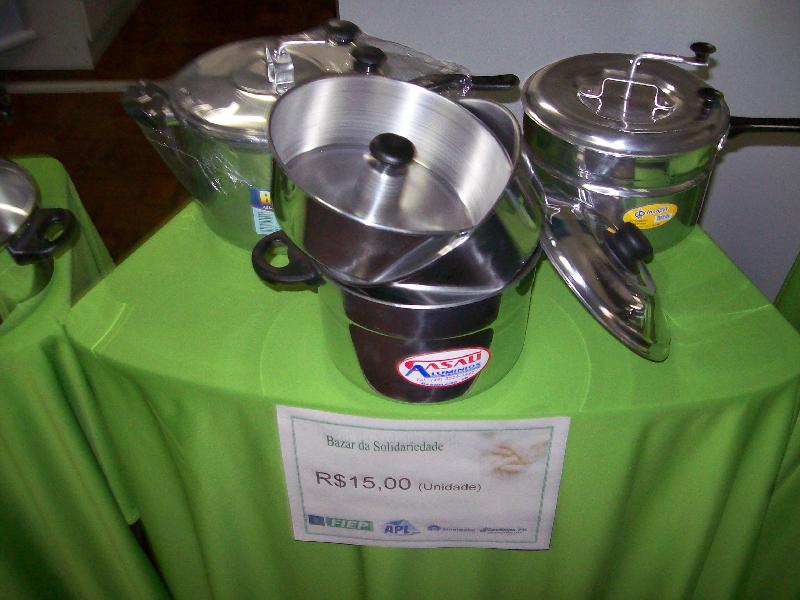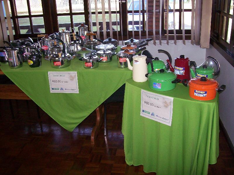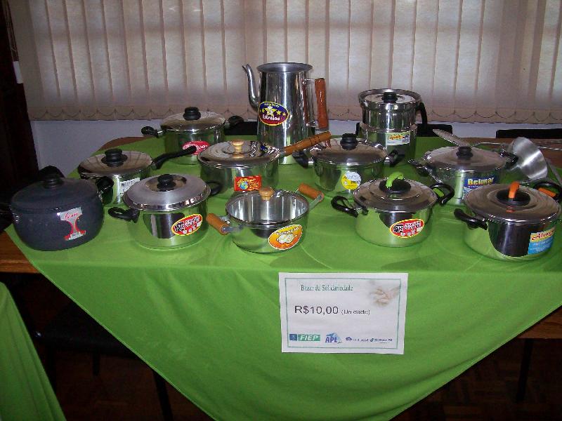 e produtos em alumínio. As panelas foram doadas pelos Empresários do APL e vendidas a preço de inferior.